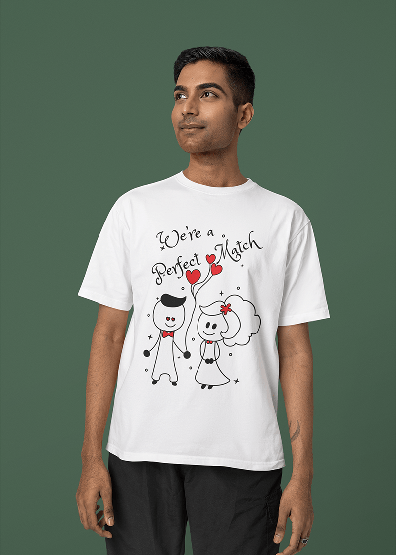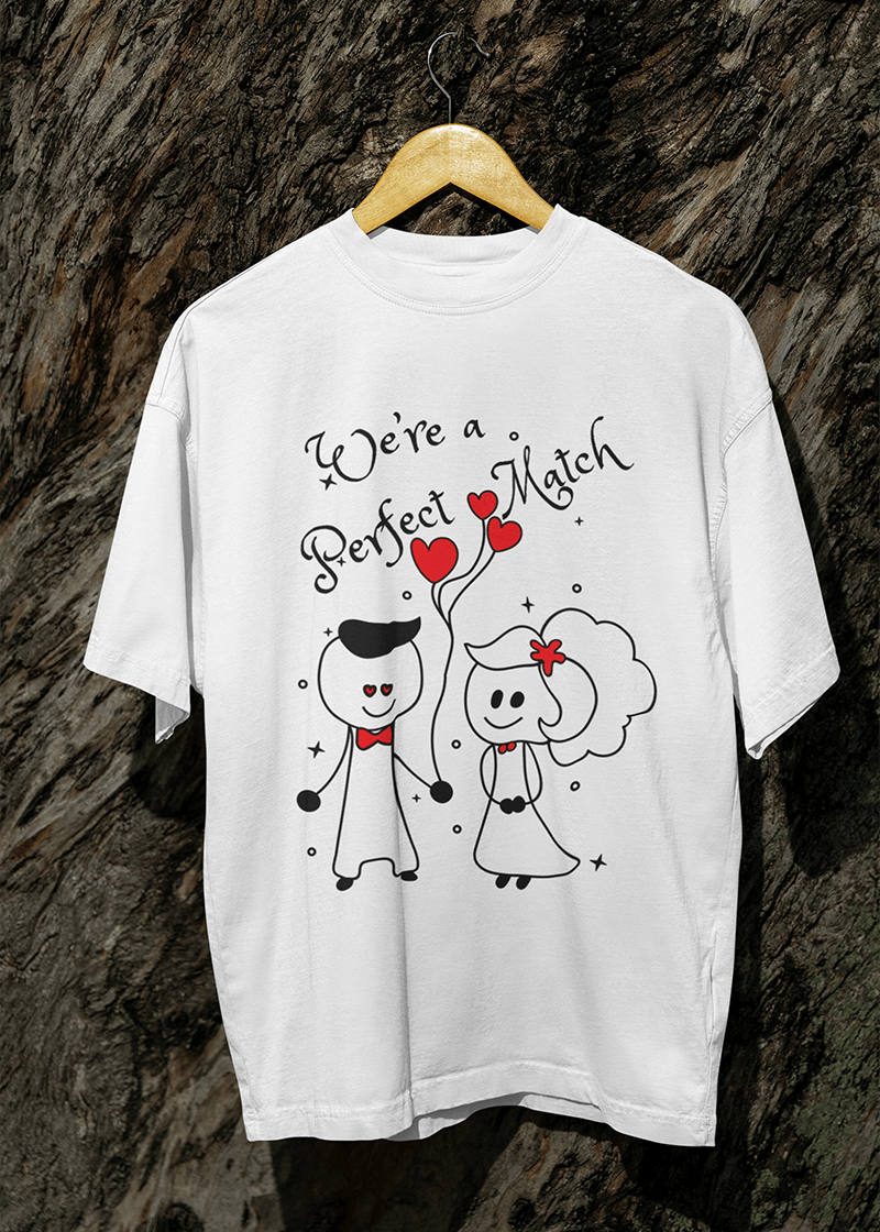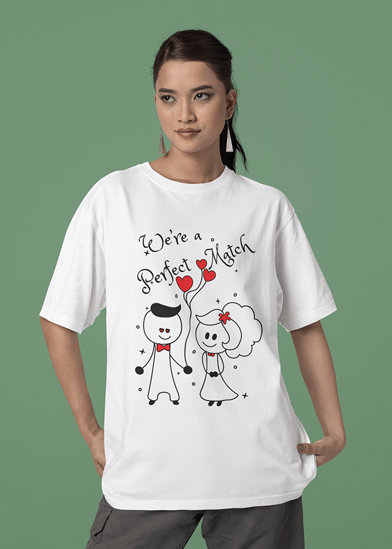 This Valentine’s Day, celebrate the bond of love with our oversized tee featuring two adorable animated creatures. The playful design is paired with the text "We are a perfect match," making it a fun and lighthearted tribute to the connection you share with someone special. Crafted for comfort and style, this tee is perfect for cozy date nights or casual outings with your Valentine.