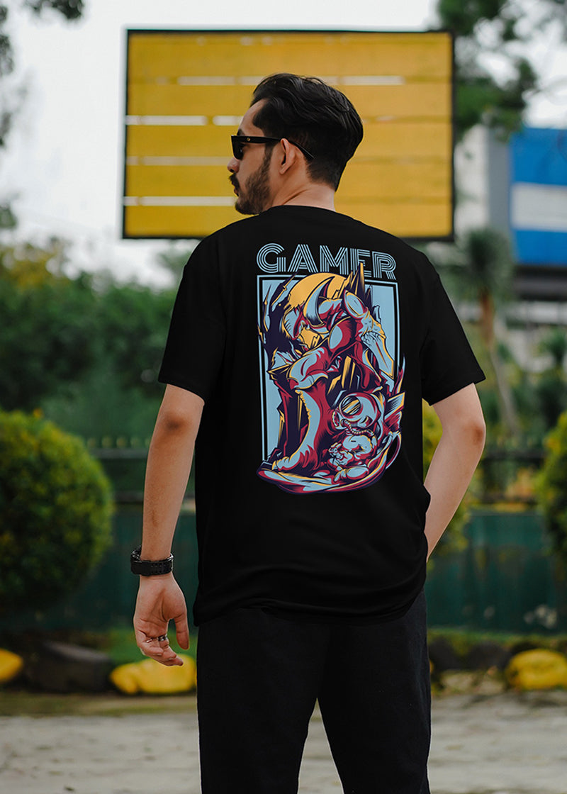 Enter the exciting world of gaming with this awesome T-shirt. Its cool design and vibrant colors capture the fun of gaming, making it perfect for events or hanging out with friends. Super comfy with a regular neckline and drop sleeves, it's ideal for extended play sessions. Pair it with dark jeans for a modern look or comfy pants for a relaxed vibe. Layer it with a hoodie for extra warmth and style. A must-have for any gamer to show their passion.