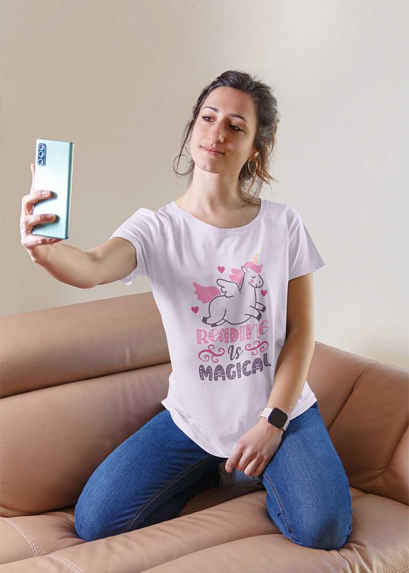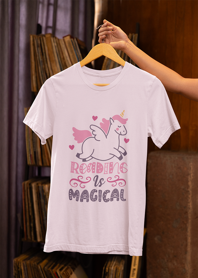 Step into the realm of imagination with this captivating T-shirt. Featuring a whimsical graphic celebrating the wonders of literature, it’s a tribute to the magic within books. The design showcases a mystical creature with swirling motifs, evoking enchantment and wonder. Beneath, a message reminds us of reading's transformative power. Crafted from soft, breathable fabric in a flattering silhouette, this T-shirt combines style with fantasy. Whether lounging at home or exploring the world, let this T-shirt be a testament to your love for all things magical and literary.