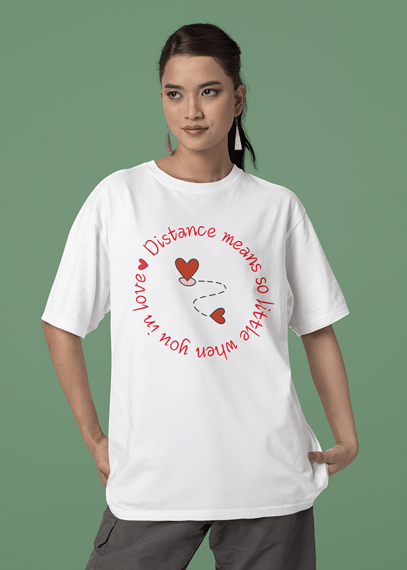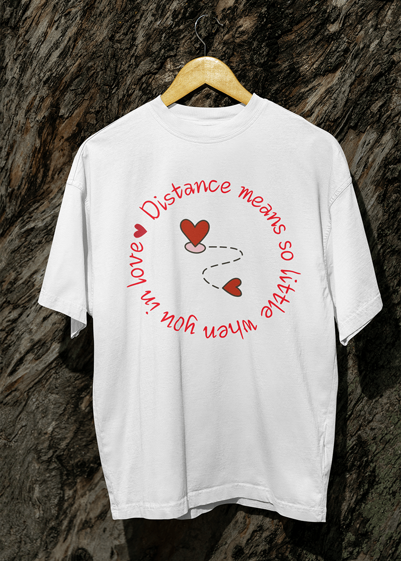 Celebrate love that knows no distance with this oversized tee. Featuring two hearts and a heartfelt message, it’s the perfect blend of comfort and romance. Whether near or far, this tee keeps the love strong and the style effortless. Ideal for cozy dates or casual outings, it’s a must-have for Valentine’s Day and beyond. Wear it, feel it, love it!