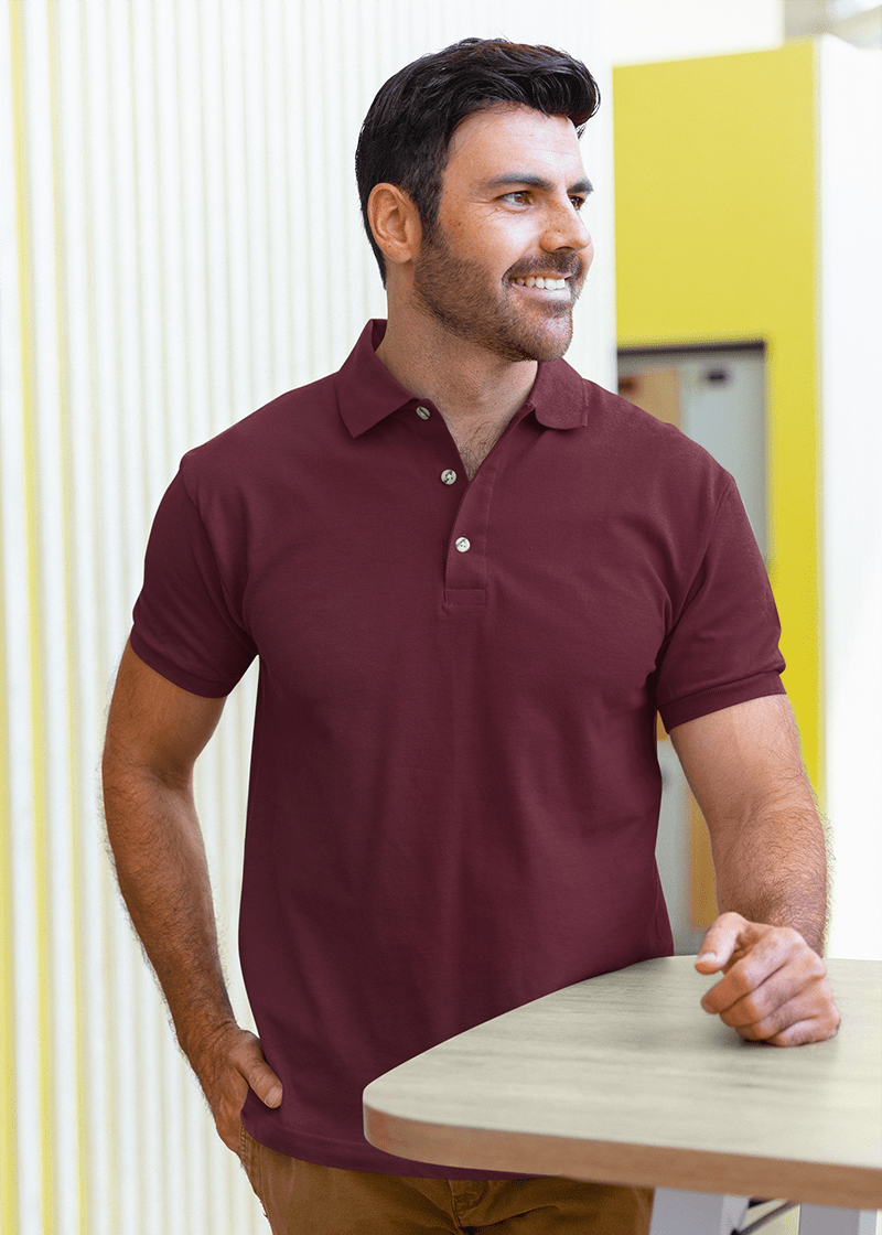 Explore an alluring aesthetic with our Maroon Polo, made from luxurious, breathable cotton ensuring comfort throughout the day. This adaptable garment showcases a timeless crew neckline and a sleek, tailored silhouette, suitable for any event. Enhance your wardrobe with this indispensable piece, seamlessly fusing refinement and ease. Uncover the ideal synthesis of sophistication and straightforwardness with this essential addition to your closet.