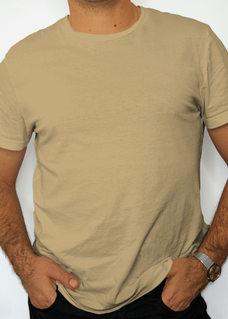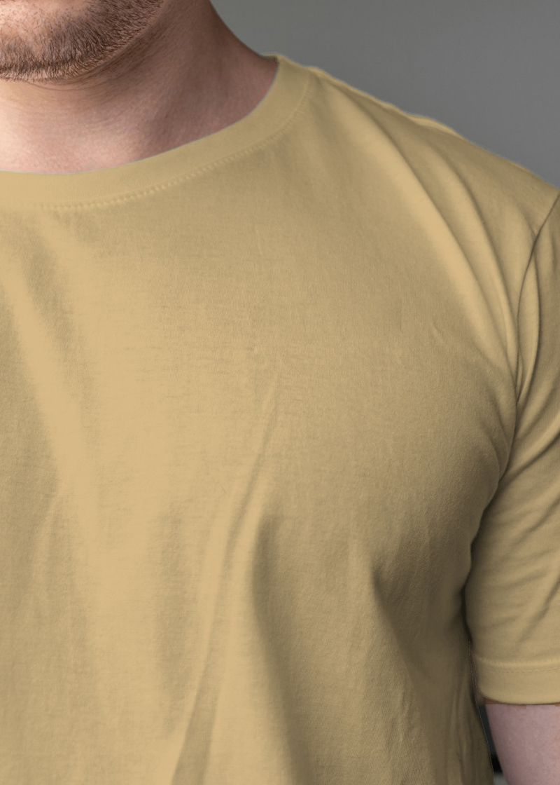 Get comfy and stylish in our Solid Beige T Shirt. It's a must-have for anyone who likes to keep things simple yet classy. The soft beige color adds a warm touch to your outfit, and the soft cotton fabric feels great all day long. This T Shirt is all about having an easy style that looks great however you style. Its versatile design makes it easy to mix and match with your existing wardrobe staples, offering endless styling possibilities.