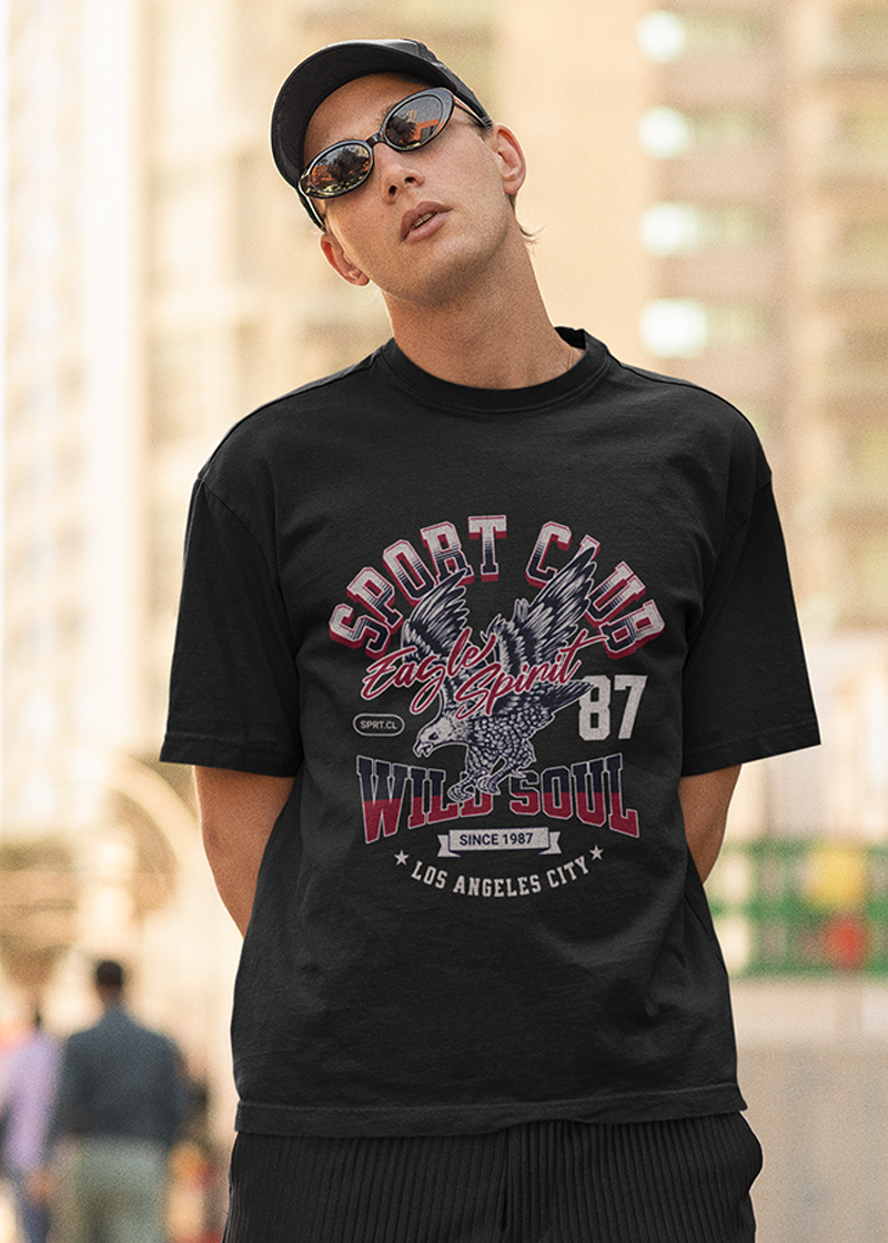 Soar higher, walk wilder. This oversized black tee packs vintage sport club vibes with bold lettering and a fearless eagle ready to take flight. It’s got that “born to be free” attitude, perfect for guys who move like the wind and dress like they lead the pack.